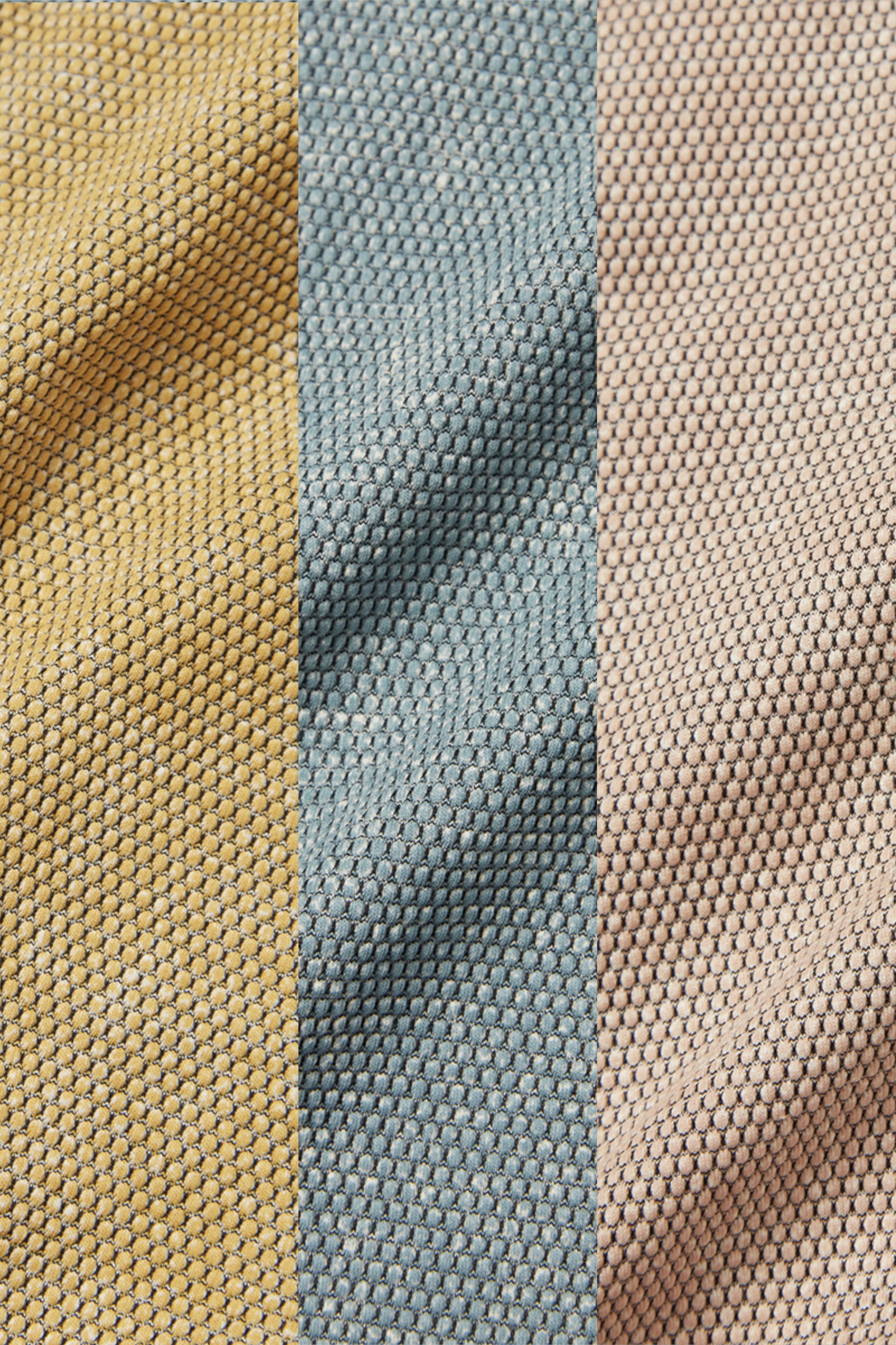 最大の特徴は、一見すると織りや編み地のように見える、奥行きのあるプリント意匠。